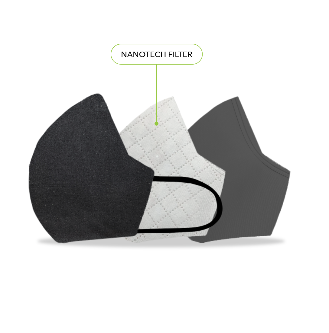We use nanotech fibres in the middle layer, while the inner and outer layers are made with cotton. One of our metrics is to reduce the weight of the mask to drive comfort with each version - the goal is to deliver a featherweight mask, so the user doesn’t even realise that they have a mask on.
