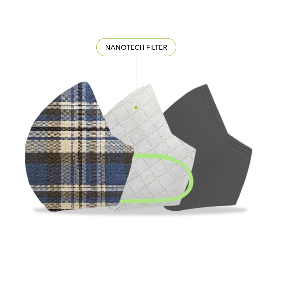 We use nanotech fibres in the middle layer, while the inner and outer layers are made with cotton. One of our metrics is to reduce the weight of the mask to drive comfort with each version - the goal is to deliver a featherweight mask, so the user doesn’t even realise that they have a mask on.